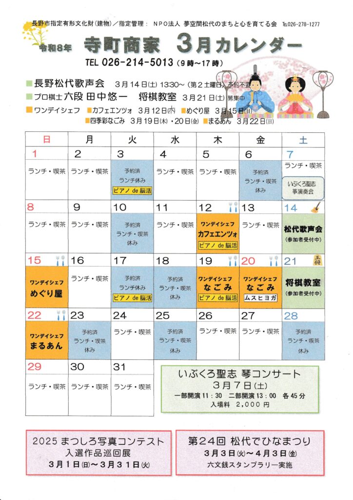 【2026年3月予定】 *3/1現在(画面クリックで見やすくなります)